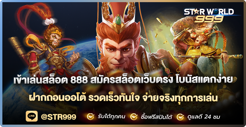 เข้าเล่นสล็อต 888 สมัครสล็อตเว็บตรง โบนัสแตกง่าย ฝากถอนออโต้ รวดเร็วทันใจ จ่ายจริงทุกการเล่น